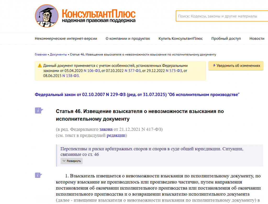 Да, информация появляется в разделе «Исполнительные производства». Это важно, потому что внесудебное банкротство возможно только при закрытом производстве по причине отсутствия имущества.