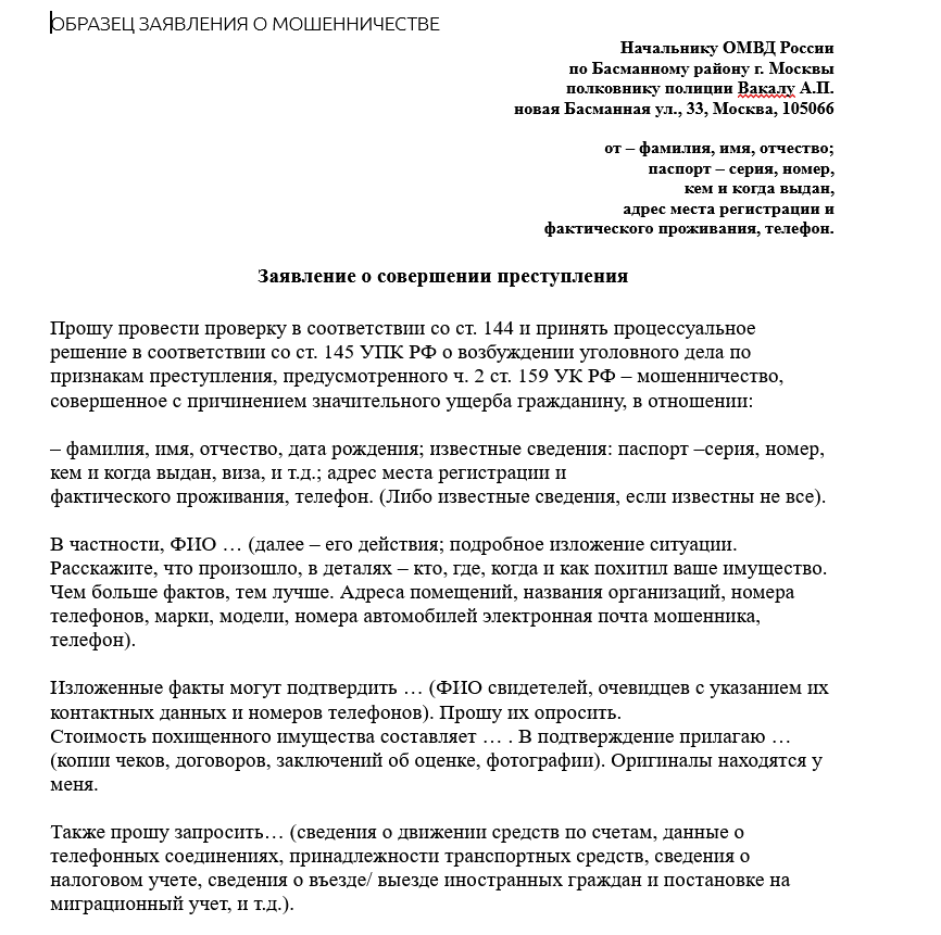 Основные признаки мошенничества: